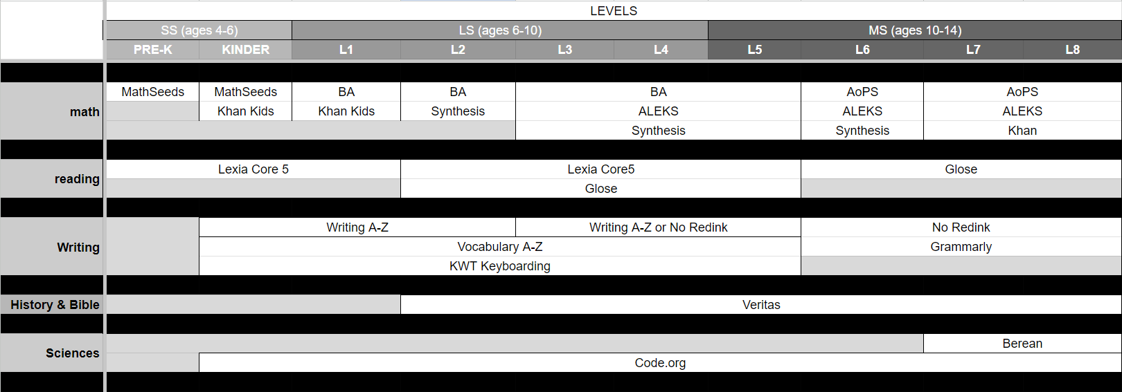 Students in grades K-6 receive instruction in Science and History through our Guide, while grades 7-8 complete their courses online.